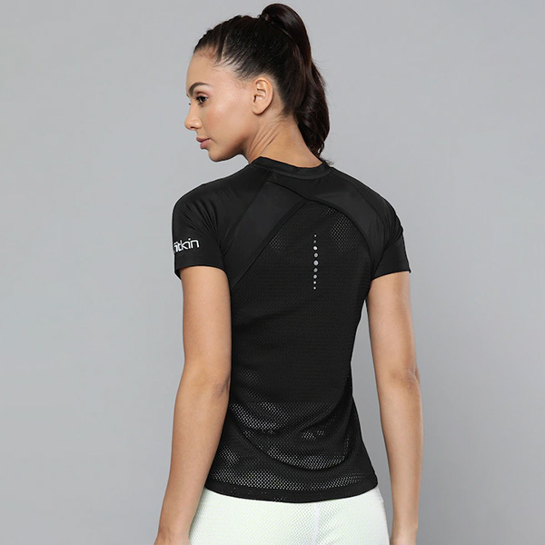 Women Black Slim Fit Training or Gym T-shirt