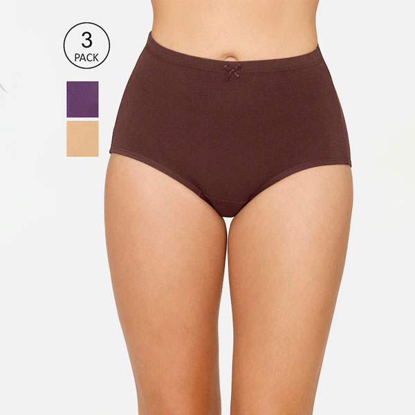 Women Brown & Purple Pack Of 3 Solid Basic Briefs